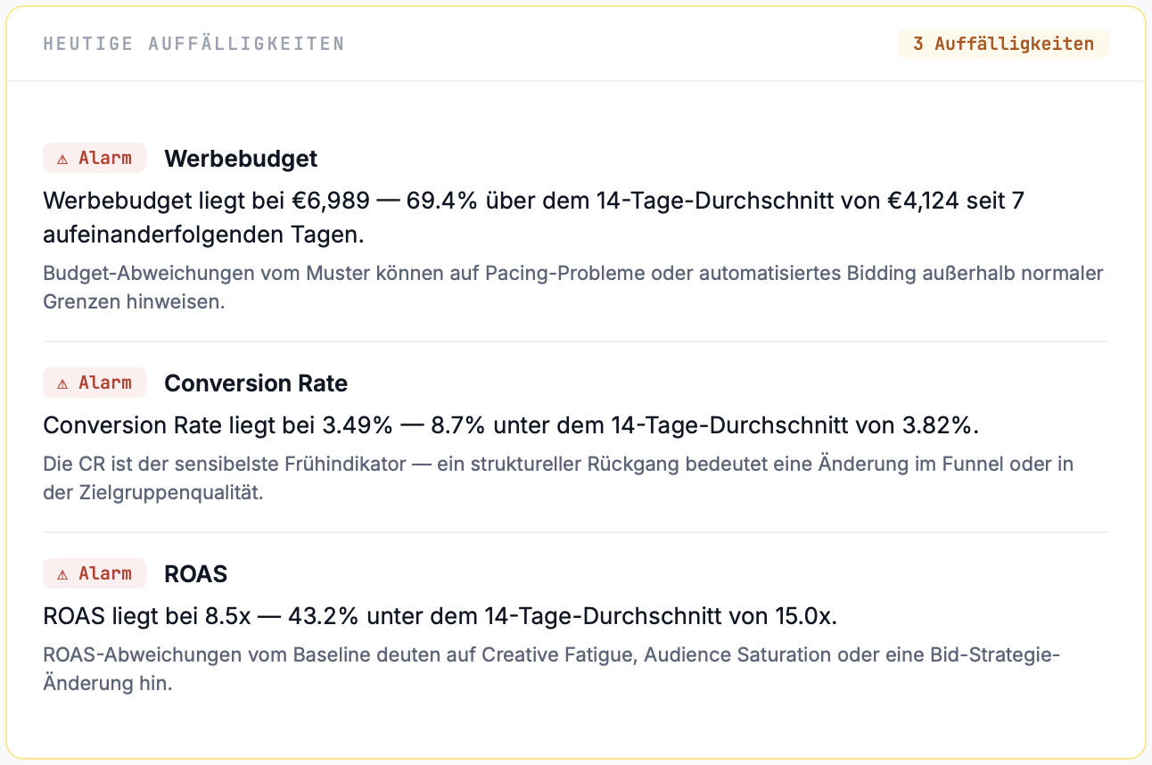 The CEO gets a strategic summary. The performance lead gets channel-level signals. The CRM team gets customer quality metrics. Same data, framed for each role.