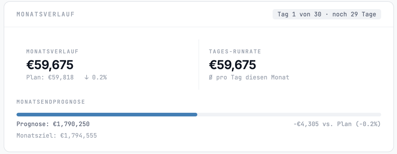 Sessions, conversion rate, AOV and ROAS broken down by channel. Know whether you're beating plan or burning budget before it's too late to react.